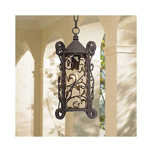 One-Day Sale: Up to 50% Off Casa Seville Rustic Outdoor Hanging Light Dark Walnut Scroll 15 Champagne Water Glass Damp Rated for Exterior House Porch Patio Outside Deck Garage Front Door Home Roof Gazebo - John Timberland